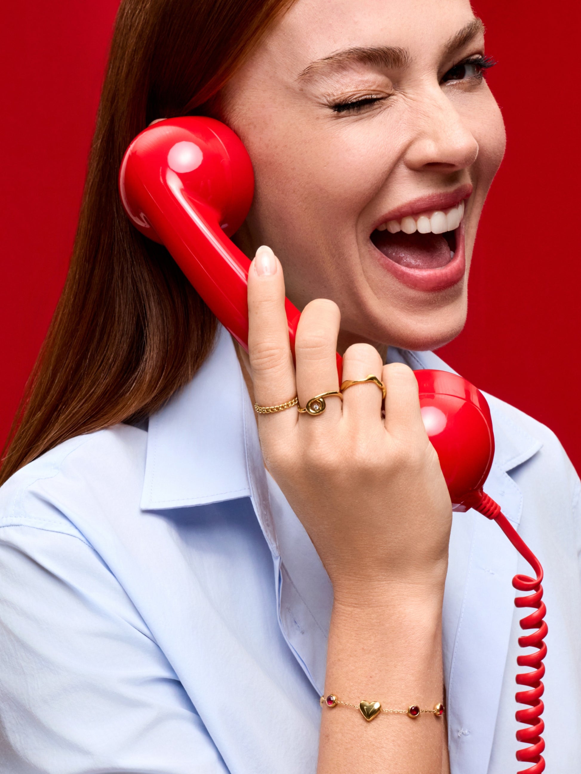 La Pulsera Red Spark presenta un diseño delicado y femenino, compuesta por una cadena fina dorada que rodea la muñeca de forma ligera y elegante. A lo largo de la cadena aparecen cristales rojos redondos, engastados en bases doradas, que aportan puntos de brillo e intensidad a la pieza. En el centro destaca un corazón dorado de acabado liso y pulido, un elemento simbólico que añade un toque romántico y sofisticado al conjunto. El contraste entre el dorado y el rojo crea un aspecto armonioso y atemporal, haciendo que esta pulsera sea ideal para llevar sola o combinada con otras piezas de la colección Red Spark. Una pieza versátil, perfecta para el día a día o para ocasiones especiales, donde el detalle y el significado se unen en un accesorio elegante y lleno de personalidad. Ideal para quienes disfrutan de piezas con un toque de color rojo y un estilo más romántico y llamativo.