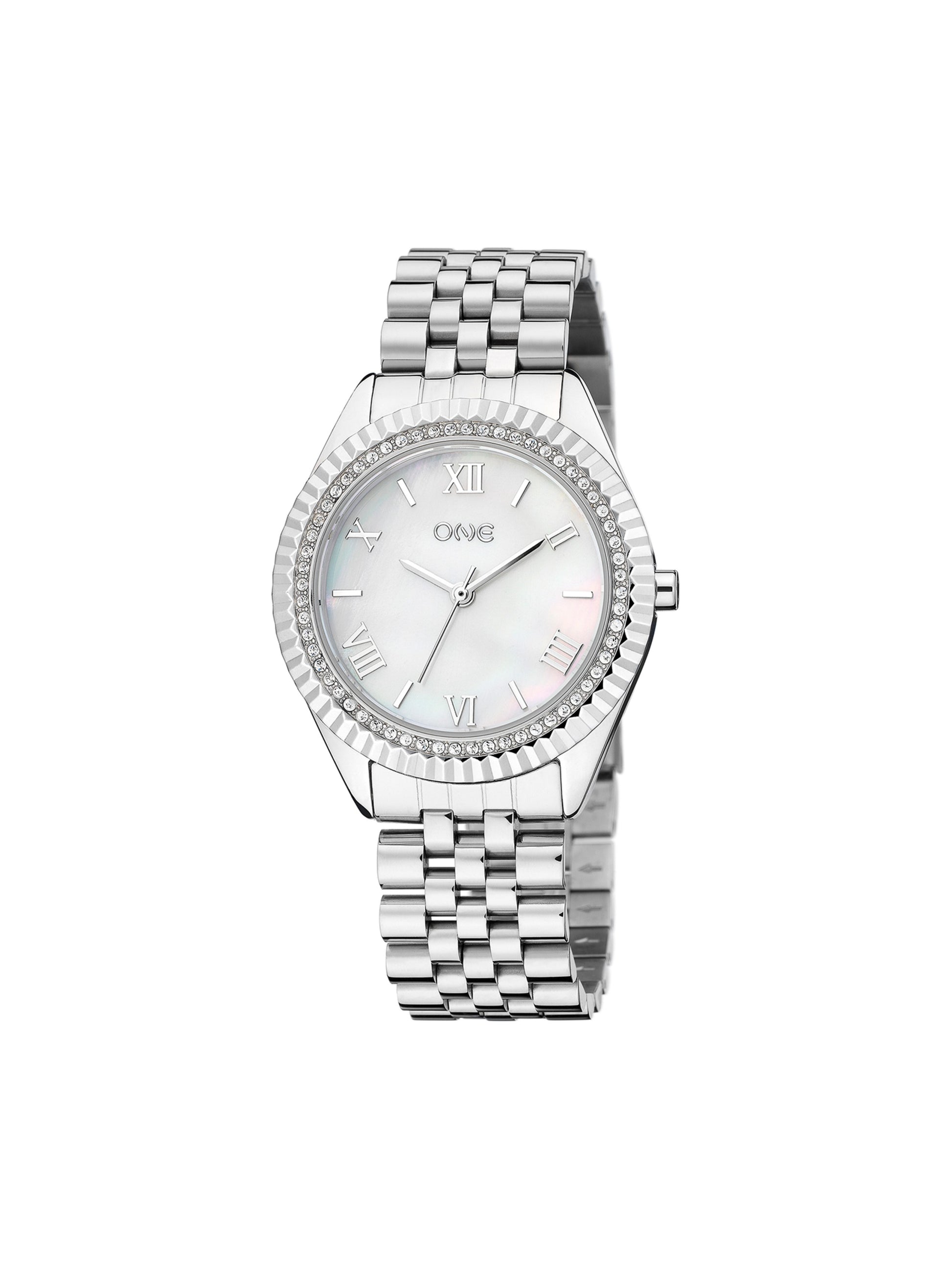 El reloj analógico Celebrity Silver presenta un diseño atrevido y sofisticado, perfecto para los amantes del plateado. Con una esfera redonda de nácar, destacan las agujas en tono plateado, que combinan a la perfección con el brillo metálico de la correa de eslabones. Este modelo incorpora además un toque extra de glamour y luminosidad, gracias a los cristales blancos engastados alrededor del bisel, enmarcando la esfera. El nombre Celebrity no fue elegido al azar: representa la idea de que cada uno de nosotros puede sentirse como una estrella con la elección adecuada de accesorios.